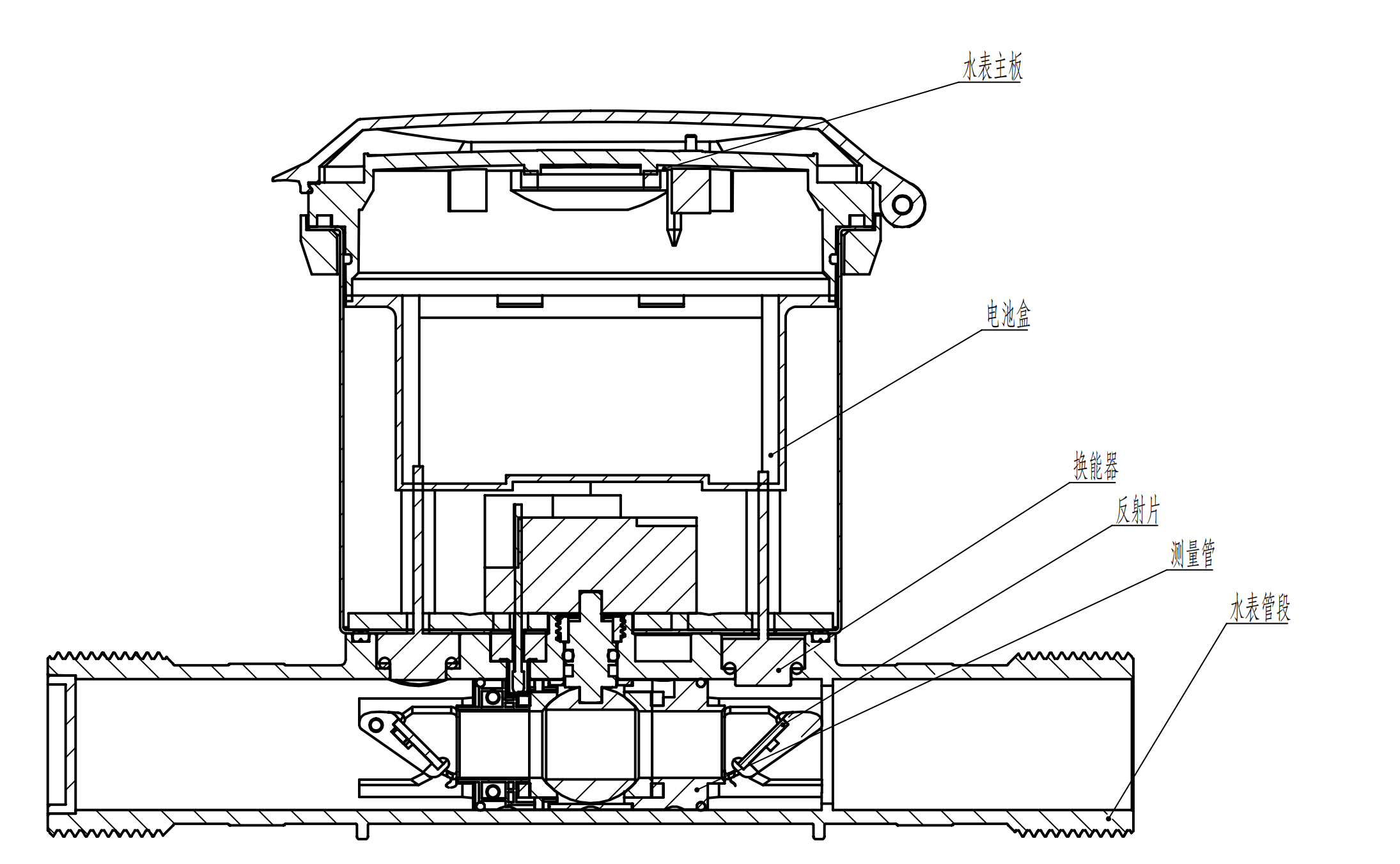 超聲水表的工作原理為在于超聲波時差法,在管道兩側對稱安裝超聲波換能器,通過測量聲波順流與逆流傳播的時間差,結合管徑截面積計算瞬時流量。